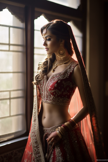 Flattering Silhouette: Lehenga Choli beautifully accentuates a woman's curves and enhances her femininity. The lehenga, a long flared skirt, combined with a well-fitted choli (blouse) and dupatta (scarf), creates a mesmerizing silhouette that complements all body types.